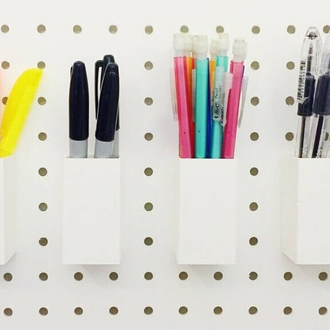 Insert peg hooks through the holes on your board. Flexible Pegboard using actual pegs. Determine the size and shape of your pegboard by checking the available wall space.